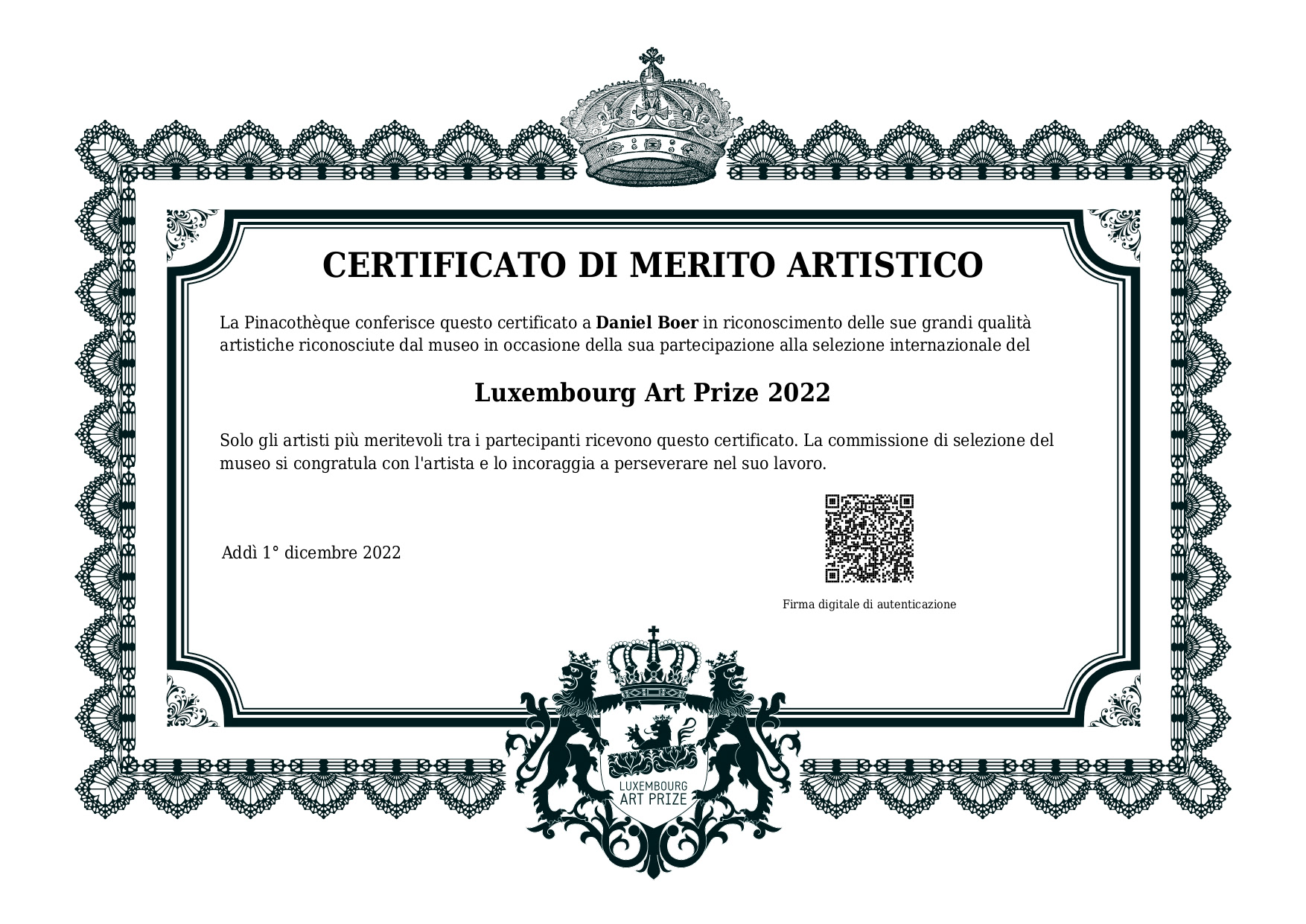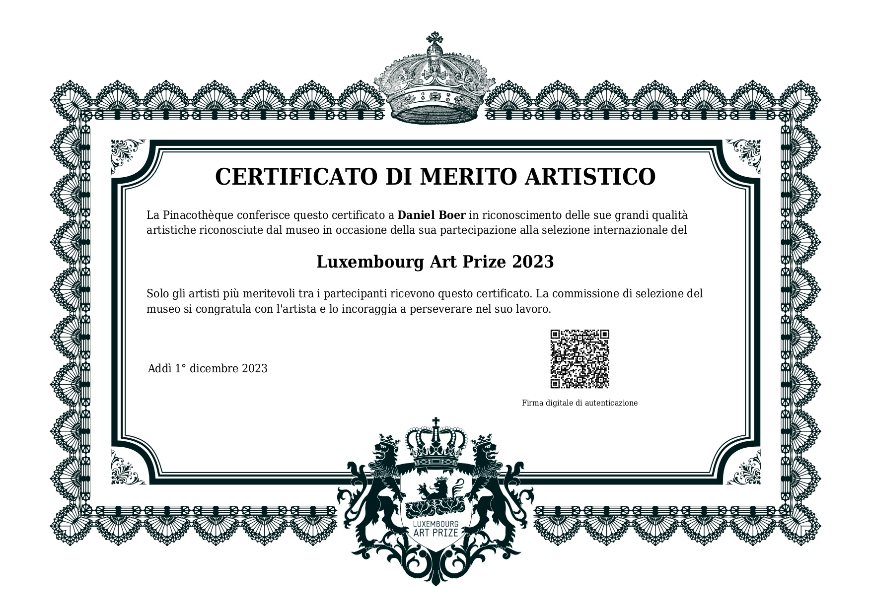 FINALISTA DELLA 9° EDIZIONE DEL LUXEMBOURG ART PRIZE 2023